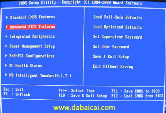 電腦啟動(dòng)時(shí)按“del”或“F8”鍵進(jìn)入BIOS設(shè)置具體設(shè)置請(qǐng)參閱 大白菜U盤(pán)裝系統(tǒng)設(shè)置U盤(pán)啟動(dòng)教程