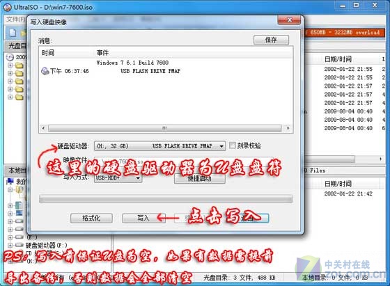 在彈出的對話框中選擇要備份的啟動U盤或者移動硬盤,如果里面有數據需要提 前備份然后選擇格式化,如果為空可以直接點擊寫入即可。