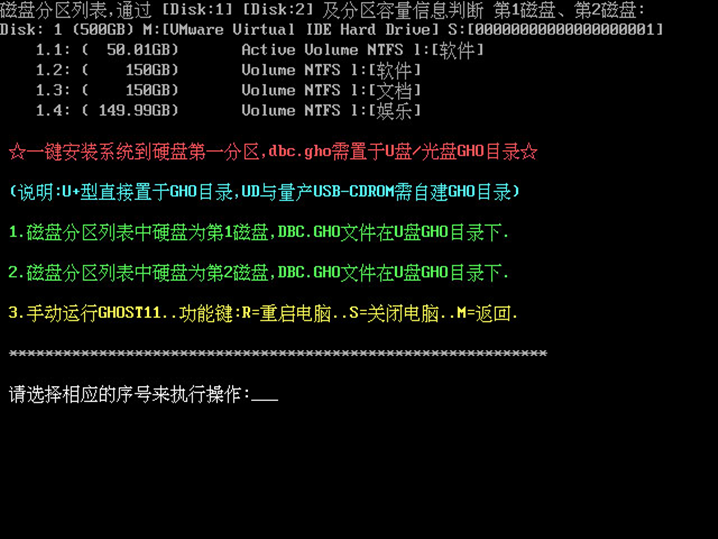 本工具制作完成的啟動U盤,內部所集成的PE系統啟動時會自動檢測U盤GHO目錄下的GHO或者ISO鏡像文件名稱,并提示進行選擇安裝:
