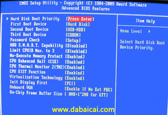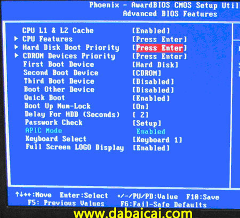 上圖2:高級(jí)BIOS設(shè)置(Advanced BIOS Features)界面,首先選擇硬盤啟動(dòng)優(yōu)先級(jí):Hard Disk Boot Priority