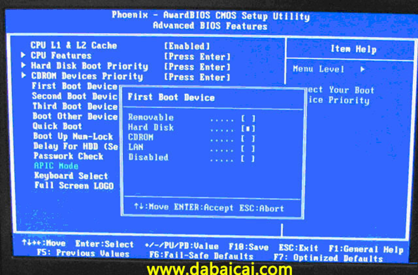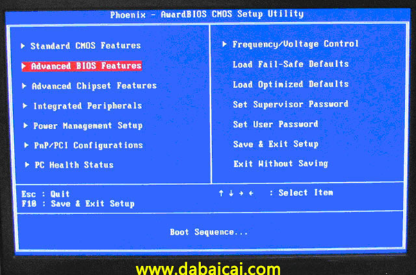 1、Phoenix – AwardBIOS(2010年之后的電腦): 下圖1:開機(jī)按Del鍵進(jìn)入該BIOS設(shè)置界面,選擇高級(jí)BIOS設(shè)置:Advanced BIOS Features