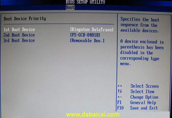 上圖2:?jiǎn)?dòng)優(yōu)先級(jí)設(shè)備選擇(Boot Device Priority)在第一啟動(dòng)設(shè)備(1st Boot Device)里選擇U盤