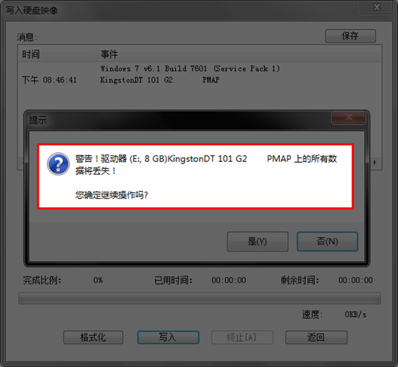 按鈕,程序會(huì)提示是否繼續(xù),確認(rèn)所選U盤無重要數(shù)據(jù)后點(diǎn)是開始制作.